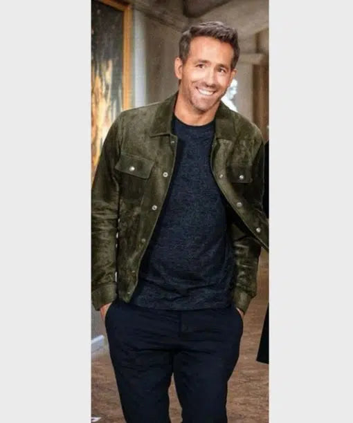 Command attention with the Red Notice Ryan Reynolds Suede Green Jacket a sleek, statement-making piece inspired by Ryan Reynolds’ effortlessly cool style in the blockbuster film. Crafted from premium suede, this jacket blends rugged charm with a sharp, tailored silhouette, making it the perfect choice for fans who want to channel cinematic confidence and refined edge in everyday wear.