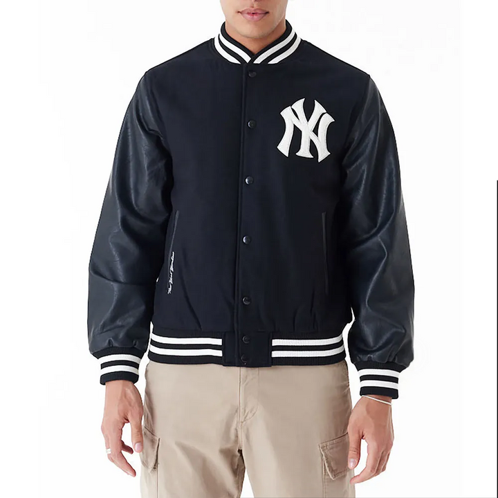 This 2009 NY Yankees World Series Varsity Jacket is an essential item for all fans. Crafted from superior materials, it displays the team's triumph through a sophisticated design and striking visuals. Demonstrate your allegiance and stay cozy in fashion with this championship jacket.