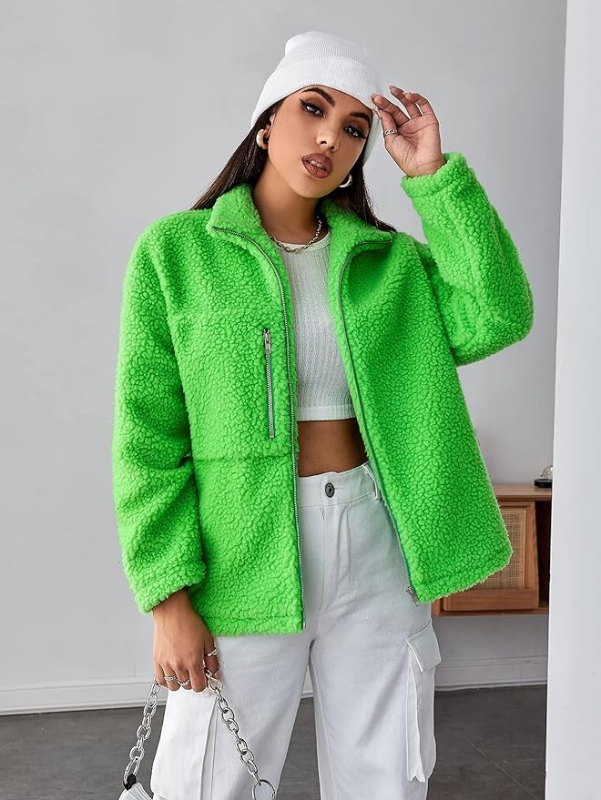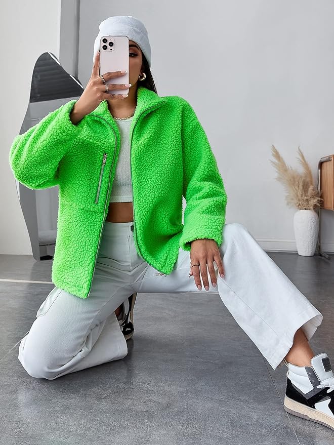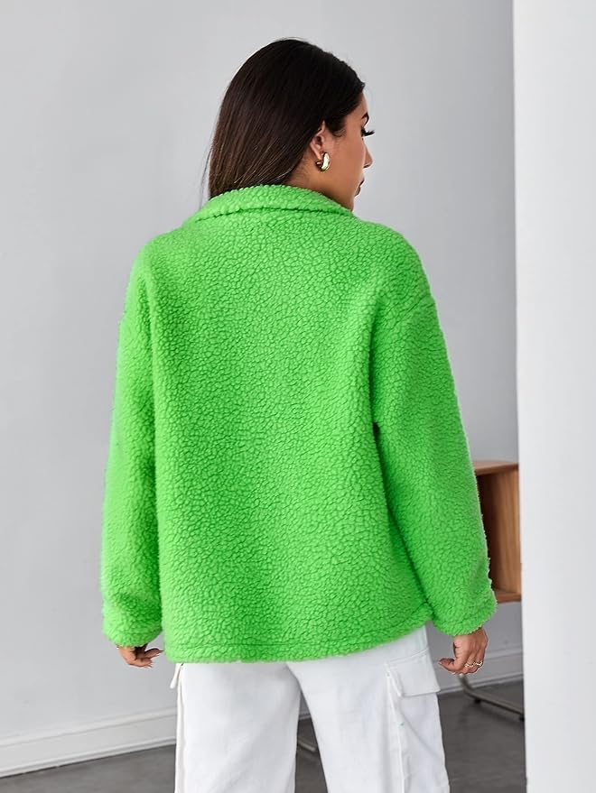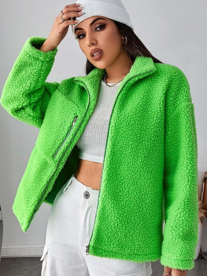 Women's Fashion Jacket Drop Shoulder Zipper Teddy Jacket