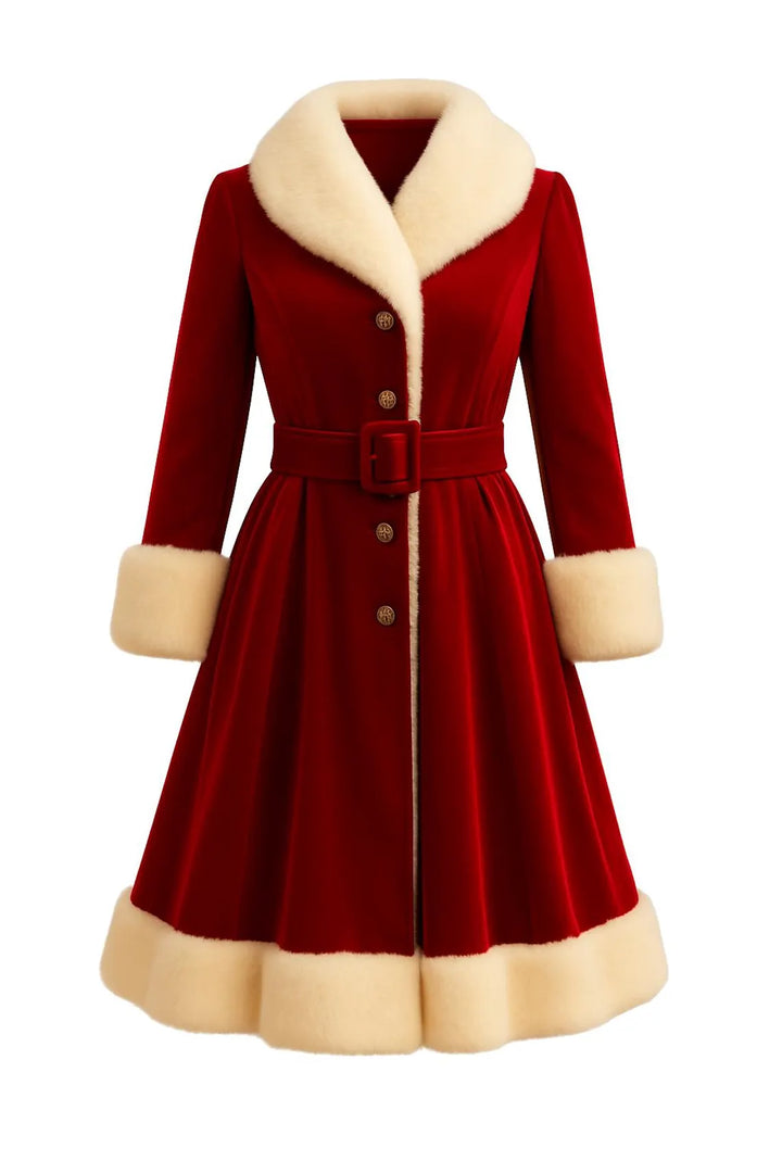 Elegant Red Velvet Faux Fur Trim Christmas Coat | Vintage Holiday Party Outerwear