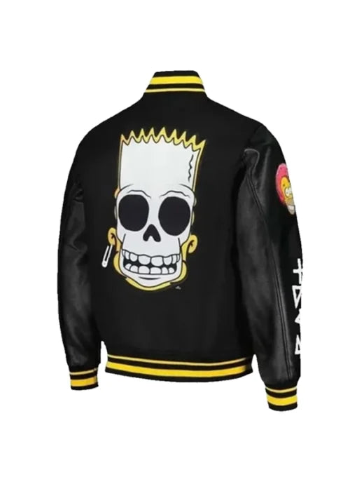 Show off classic style with a modern twist in the Premium Men’s Simpsons Black Varsity Jacket. Crafted from a durable wool body with faux leather accents, this jacket combines lasting quality with iconic varsity design. The soft viscose lining ensures all-day comfort, while ribbed details, buttoned front closure, and multiple pockets make it both stylish and practical. Perfect for casual outings or making a bold fashion statement.