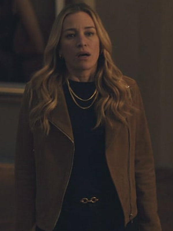 Billions S07 Piper Perabo Brown Suede Moto Jacket Celebrity USA