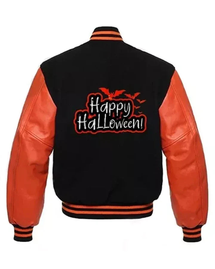 Add a festive edge to your fall style with the Happy Halloween Bomber Jacket. Designed for both men and women, it features a warm wool body paired with genuine leather sleeves, creating a perfect balance of seasonal flair and classic bomber appeal. Soft viscose lining ensures all-day comfort, while Halloween-inspired accents make it a standout choice for parties or everyday autumn wear.