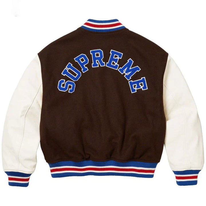 Make a bold fashion statement with the Supreme Tiger 2023 Varsity Jacket, designed for both men and women who love standout streetwear. Crafted from premium wool with genuine leather sleeves, this jacket delivers the perfect blend of warmth, durability, and style.
