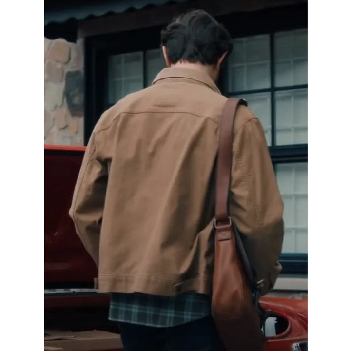 Inspired by Chris McNally’s effortlessly cool style in 3 Bed, 2 Bath, 1 Ghost, this brown cotton jacket delivers laid-back sophistication with a polished edge. Its earthy tone and timeless cut make it an easy staple for elevating casual looks.