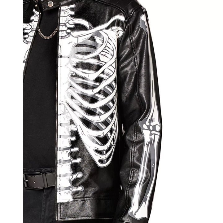 Make an unforgettable statement with the Premium Adult Skeleton Moto Jacket, designed for those who love fearless, standout style. Its bold white bone graphics run across the front, sleeves, and back, creating a striking skeletal look perfect for Halloween, cosplay events, concerts, or edgy streetwear. A front zipper paired with a button-neck closure ensures a secure fit, while the durable polyester–polyurethane construction delivers comfort and long-lasting wear.