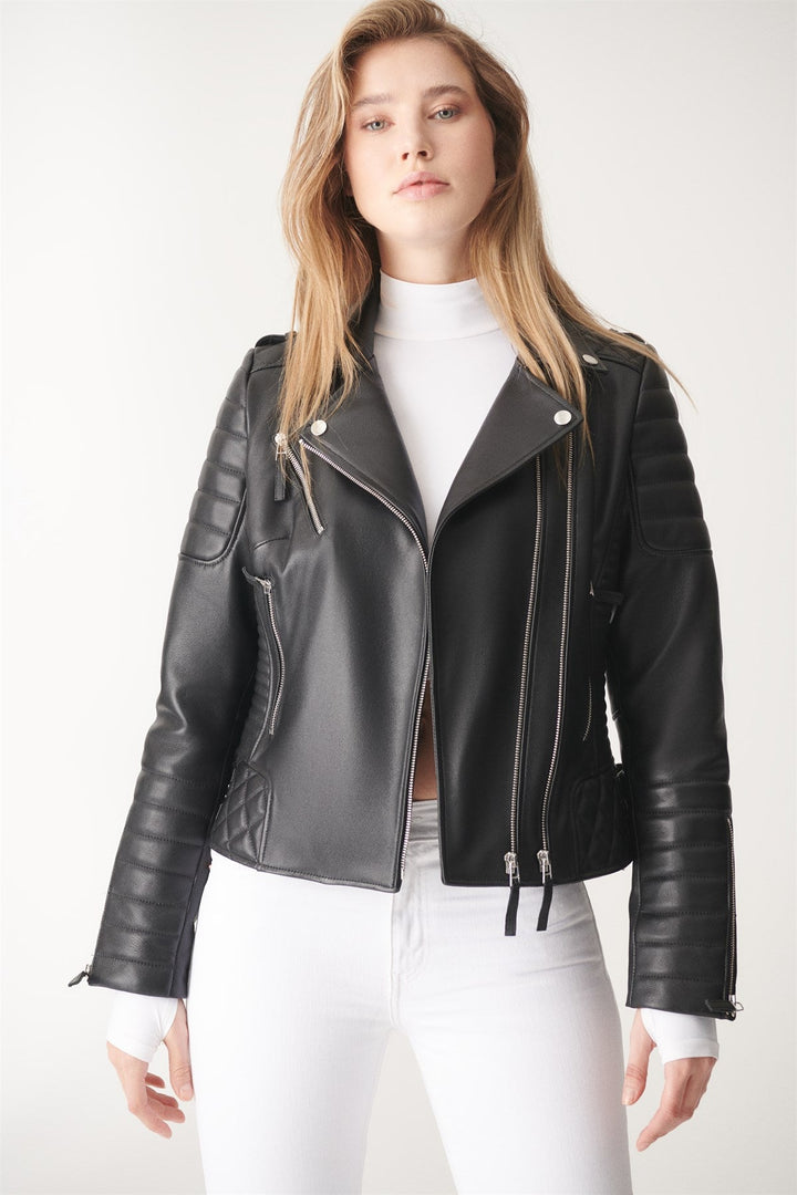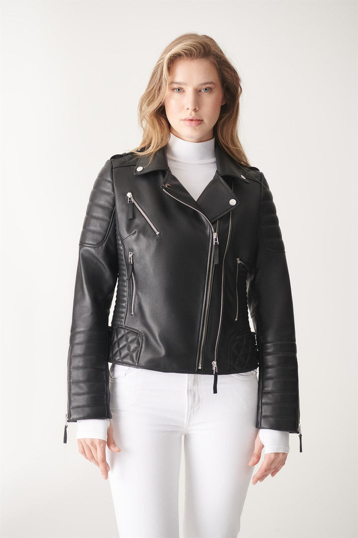 Premium Women Black Biker Leather Jacket Bold and timeless, this black biker leather jacket delivers classic moto style with a confident edge. Perfect for both...