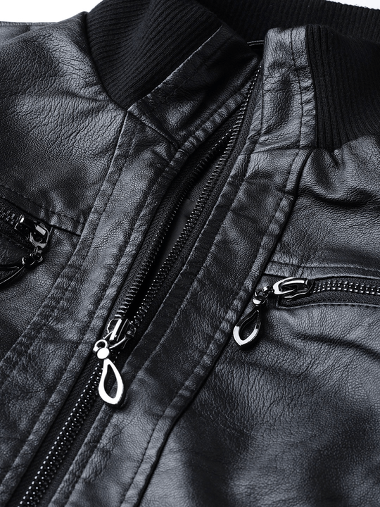 Premium Black Solid Bomber Leather Jacket This bomber leather jacket will transcend time and give you the comfortable fit that you are looking for. With...