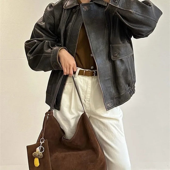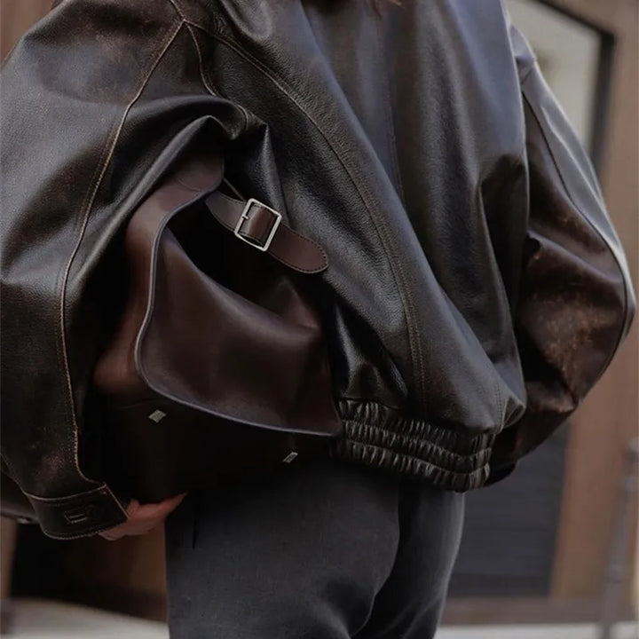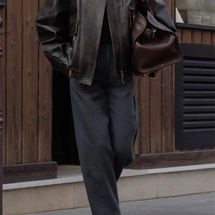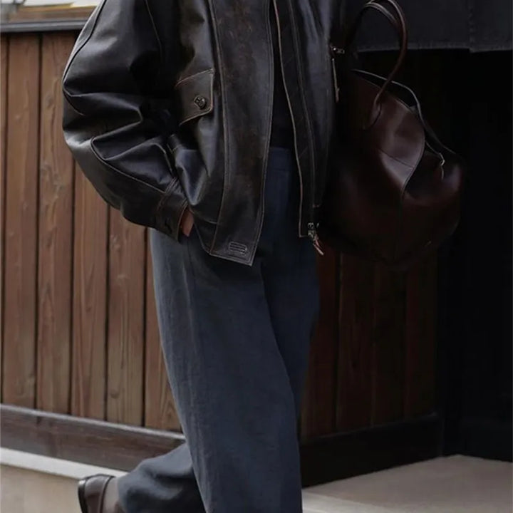 Buy Classic Cropped Leather Bomber Jacket Vintage Chic for All Occasions