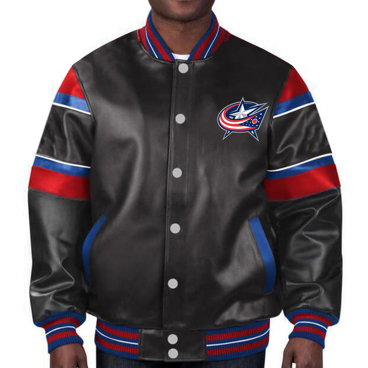 Featuring the team’s distinctive colors of navy blue, red, and white, this jacket honors the journey of the Blue Jackets with a design that balances tradition and contemporary flair. Perfect for game days or everyday wear, it’s a statement piece for fans who value both heritage and innovation.