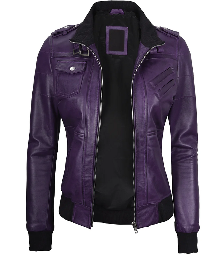 Buy Edinburgh Women Purple Bomber Leather Jacket