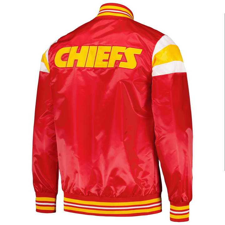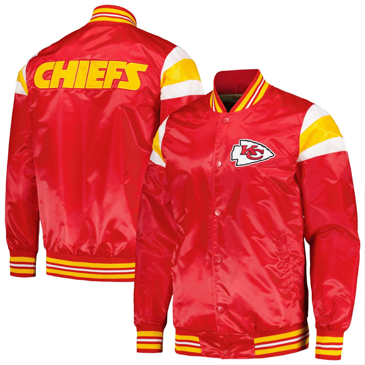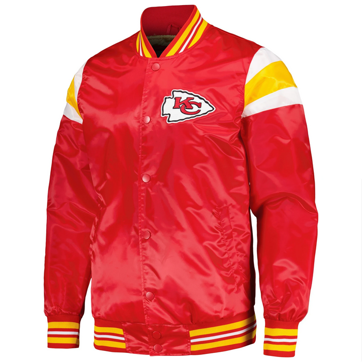 Buy Kansas City Chiefs Full-Snap Red Satin Varsity Jacket