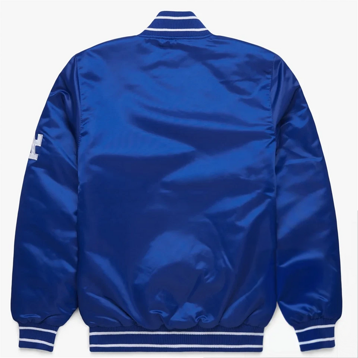 Step up your streetwear game with Los Angeles Dodgers MLB Blue Satin Jacket. Crafted from premium-quality satin, this limited edition bomber jacket offers a sleek, athletic look with unmatched comfort. Featuring the iconic Dodgers logo front and center, it's the perfect outerwear choice for loyal fans and fashion-forward individuals alike. Whether you're heading to the ballpark or out on the town, show your team pride in style with this must-have Dodgers satin jacket.