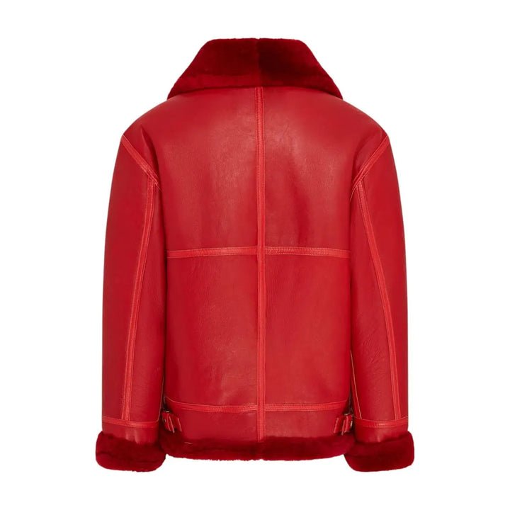 Luxury Red Shearling Bomber Jacket - Faux Fur Lined Aviator Style Winter Coat