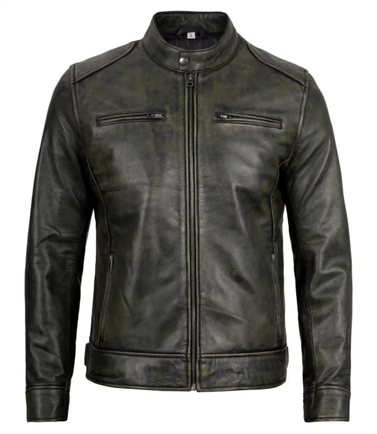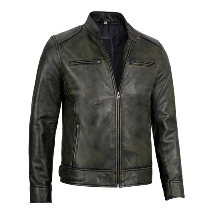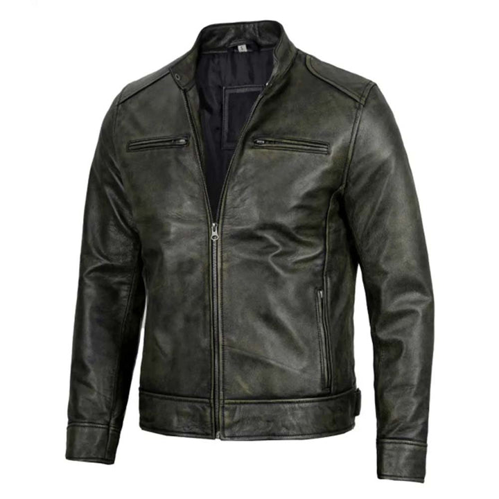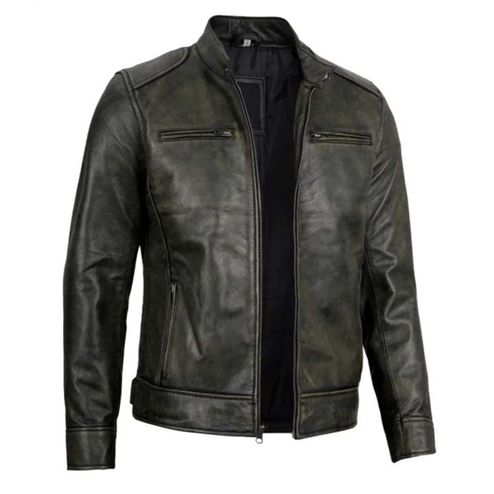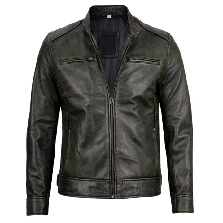 Men’s Dodge Black Waxed Racer Leather Jacket