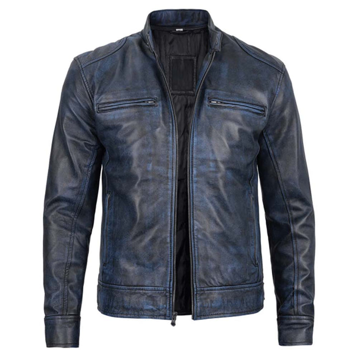 Men’s Dodge Blue Waxed Café Racer Leather Jacket