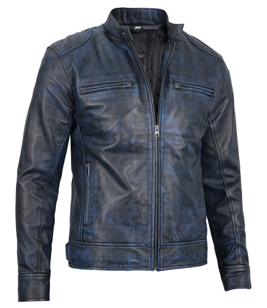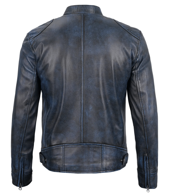 Buy Mens Dodge Blue Waxed Cafe Racer Leather Jacket