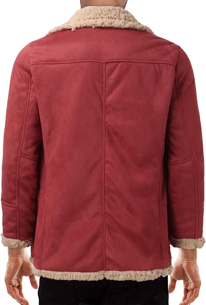 Men's Red Faux Shearling Suede Jacket - Cozy Sherpa Lined Winter Coat | Perfect Christmas Gift