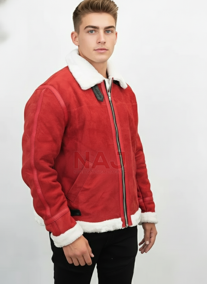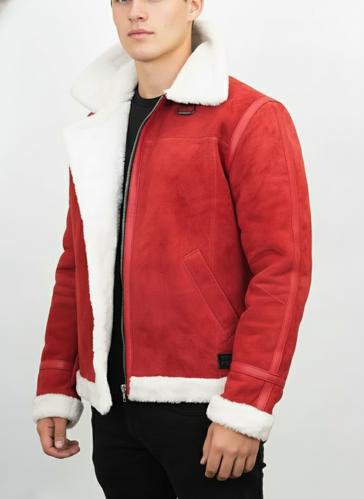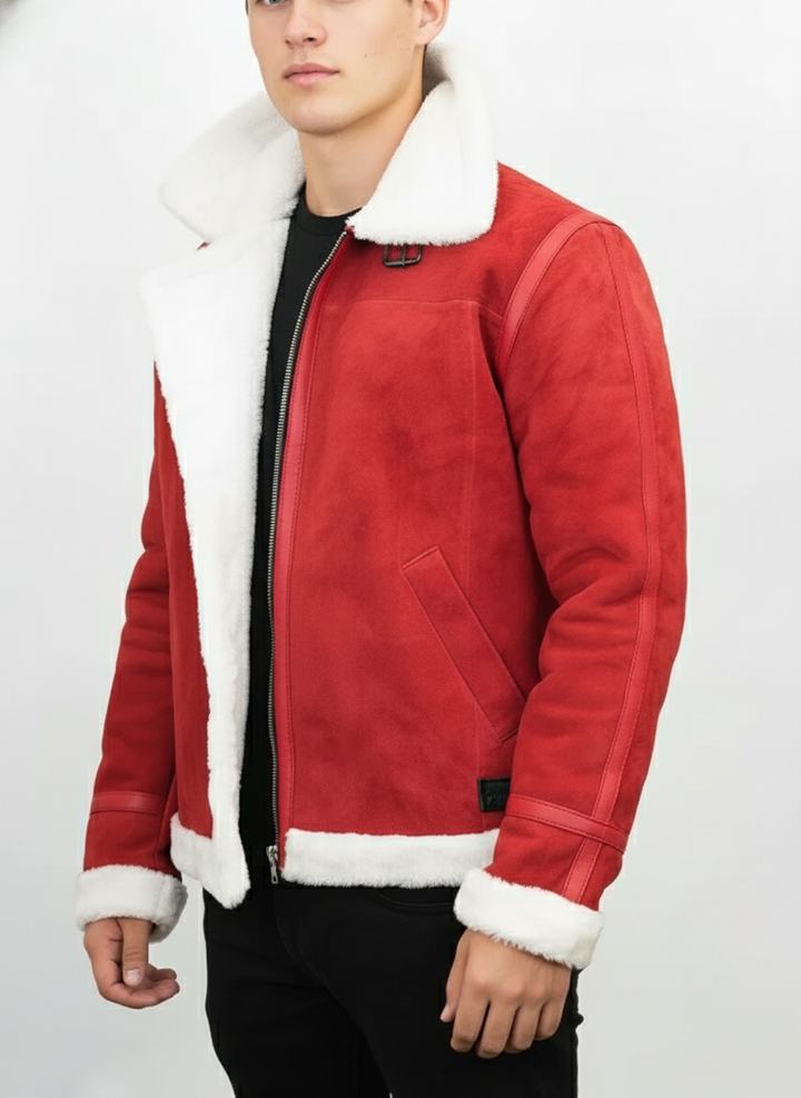 Men's Red Shearling Biker Jacket | Faux Fur Lined Winter Coat | Christmas Edition