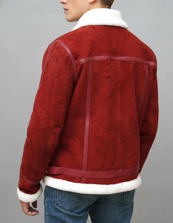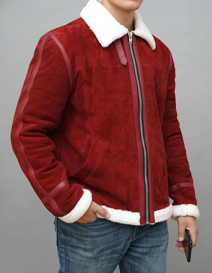 Premium Men's Red Suede Shearling Jacket