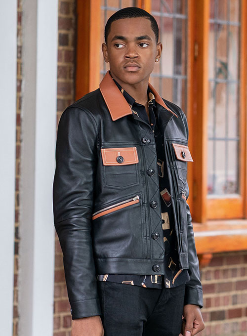 This leather jacket, worn by Michael Rainey Jr. in Power Book II: Ghost, is a sleek and stylish addition to any wardrobe. Made of high-quality leather, this jacket offers both durability and comfort. Its classic design and superior craftsmanship make it a versatile and timeless piece.