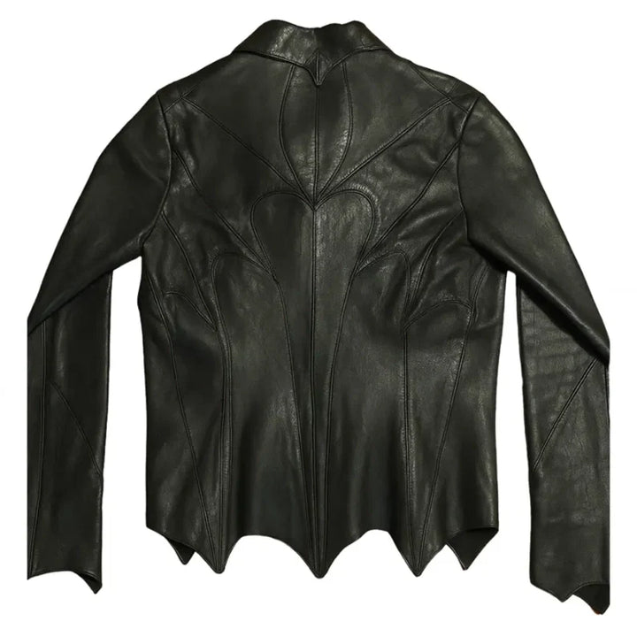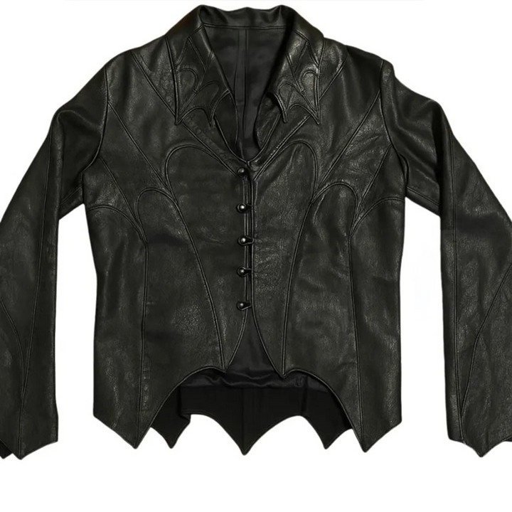 Sleeves: Full-length leather sleeves with detailed cuffs for dramatic flair