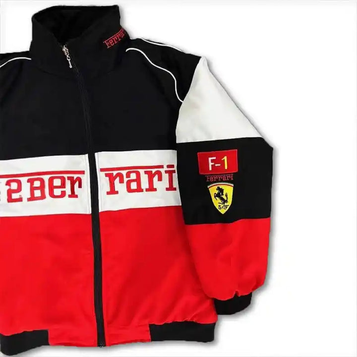 • Embroidered Ferrari and F1 logos on sleeves