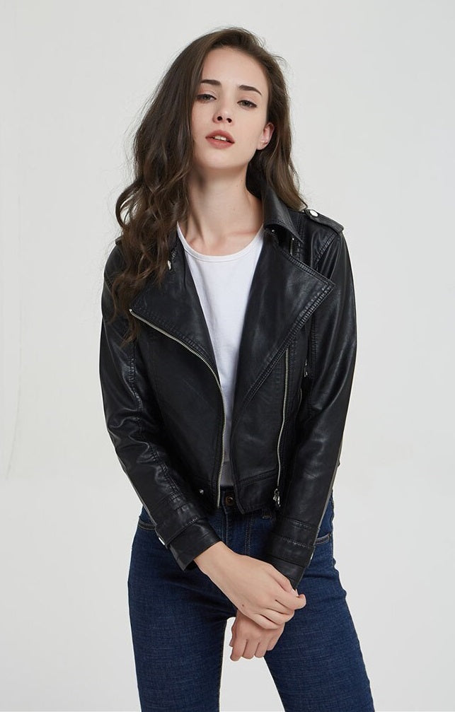 Short Slim Zipper Biker Leather Jacket   Rev up your style with the Short Slim Zipper Biker Leather Jacket. This jacket is designed for those who...