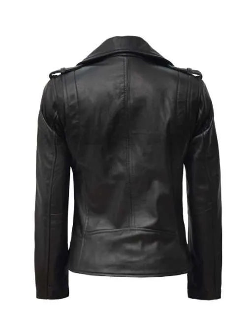 Unleash your inner warrior with the Kimiko Black Biker Jacket, inspired by The Boys Season 4. This edgy women’s biker jacket is crafted from premium real leather and features bold quilted sleeve details for added attitude. With its classic lapel collar, asymmetrical front zipper, and sleek zipper cuffs, this Kimiko leather jacket combines street-ready edge with fierce, standout style perfect for fans who want to embody strength and rebellion in every look.