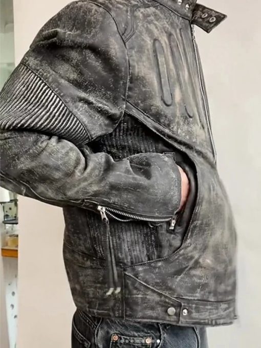 Unleash bold street style with the Travis Scott Juntae Kim Leather Jacket, a striking blend design and urban edge. Inspired by Travis Scott’s, this distressed grey biker jacket stands out with its raw attitude and premium craftsmanship. Perfect for trendsetters who push boundaries, this piece is a statement of individuality, rebellion, and high-fashion streetwear.