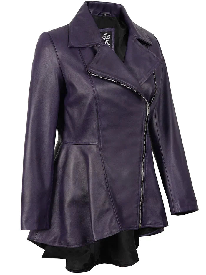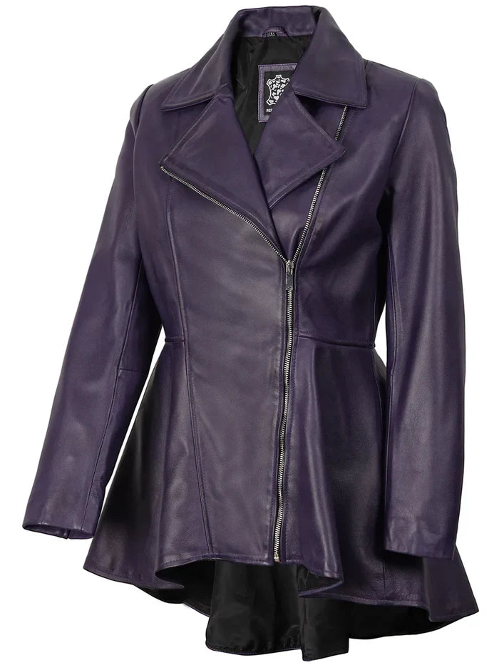 Women’s Asymmetrical Purple Peplum Leather Jacket