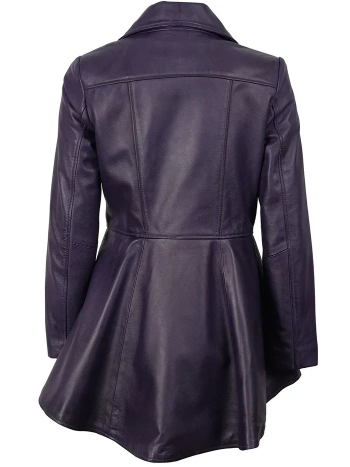 Women's Asymmetrical Purple Peplum Leather Jacket